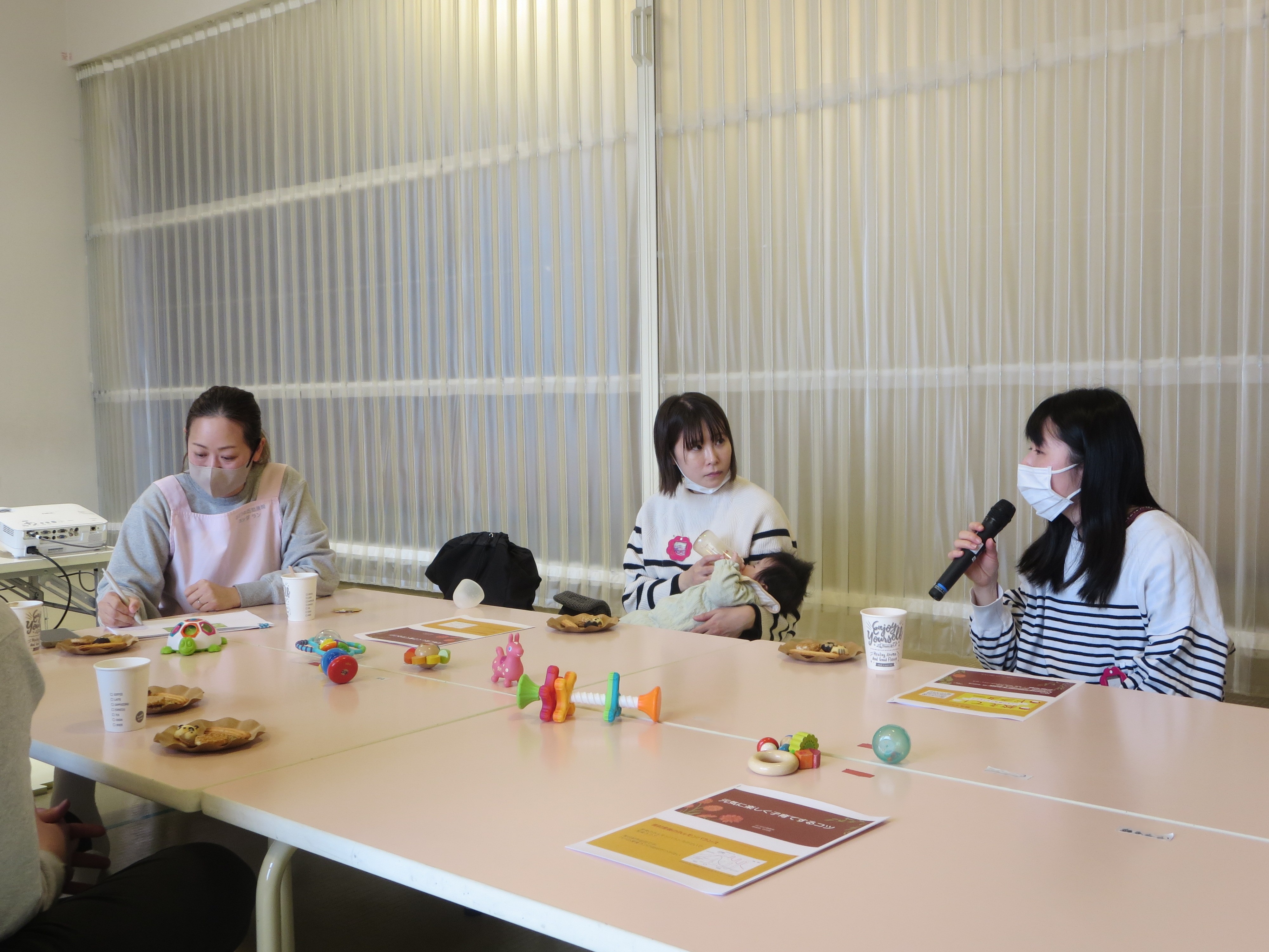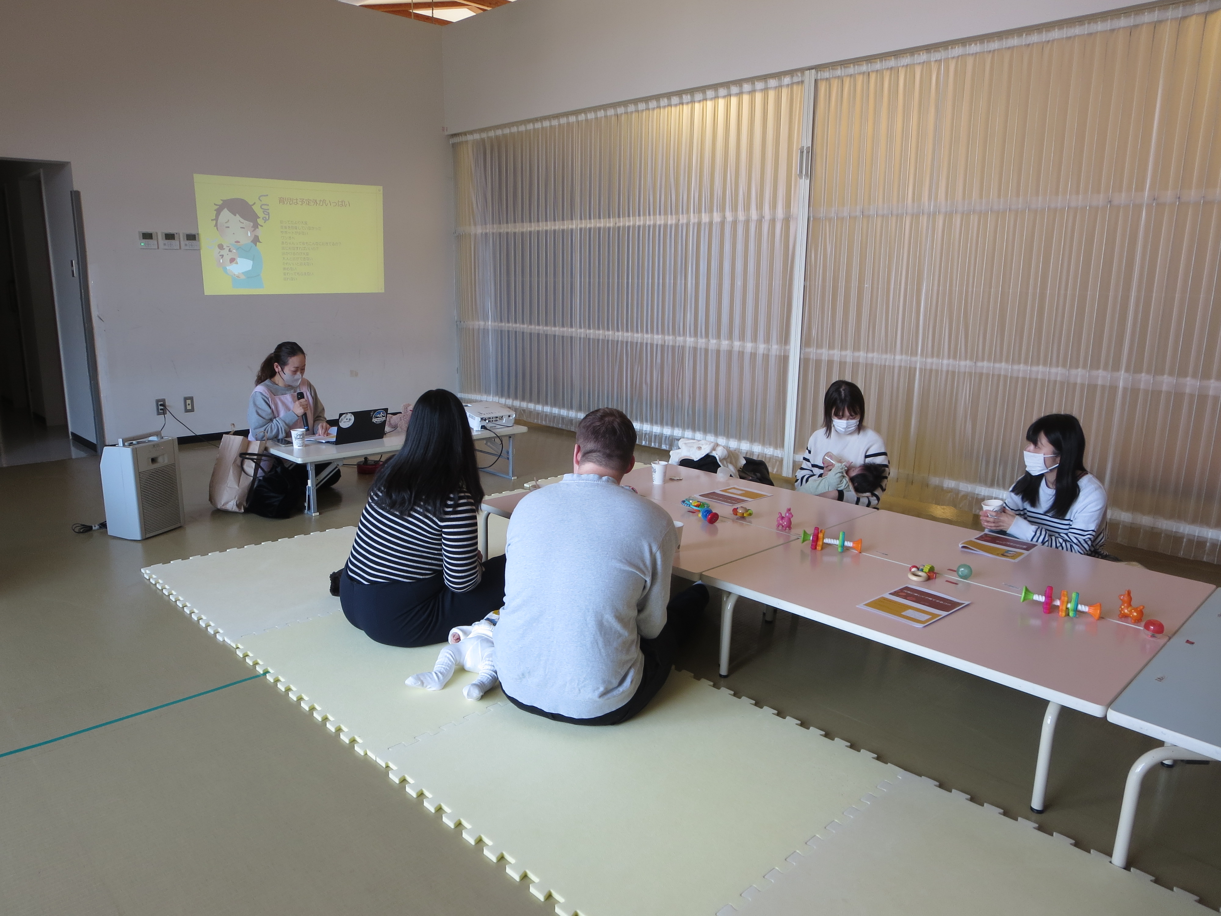 前半は「1歳までの成長発達と産後のママのホルモンバランス」などについてのお話を聞き、後半は今悩んでいることや困っていることをみんなで共有しながら、吉田さんに相談しました。1人ずつ話をしていく中で、参加者同士で同じ悩みに共感し合ったり、吉田さんにアドバイスをもらったりしながら、みんなでたくさんお話ができました。お話を伺う中で、子育てに一生懸命向き合っていることが伝わり、その姿がとてもステキだなと思いました✨