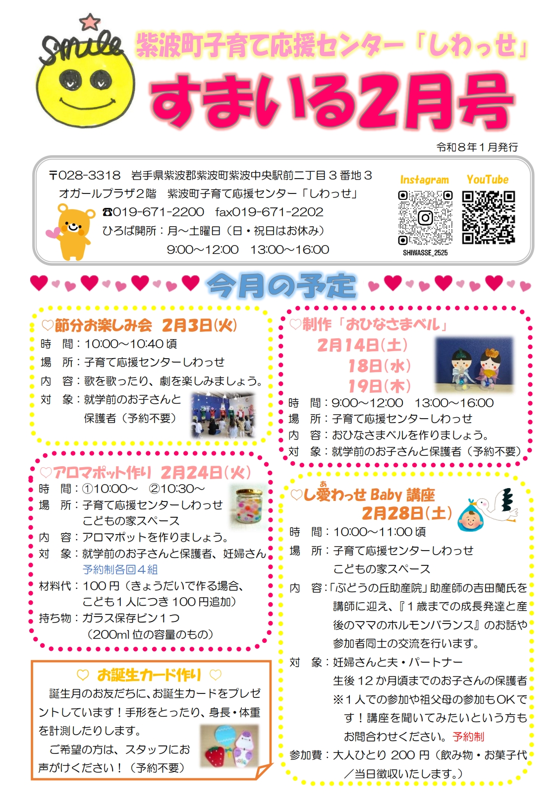 令和8年すまいる2月号/子育て応援センターしわっせ