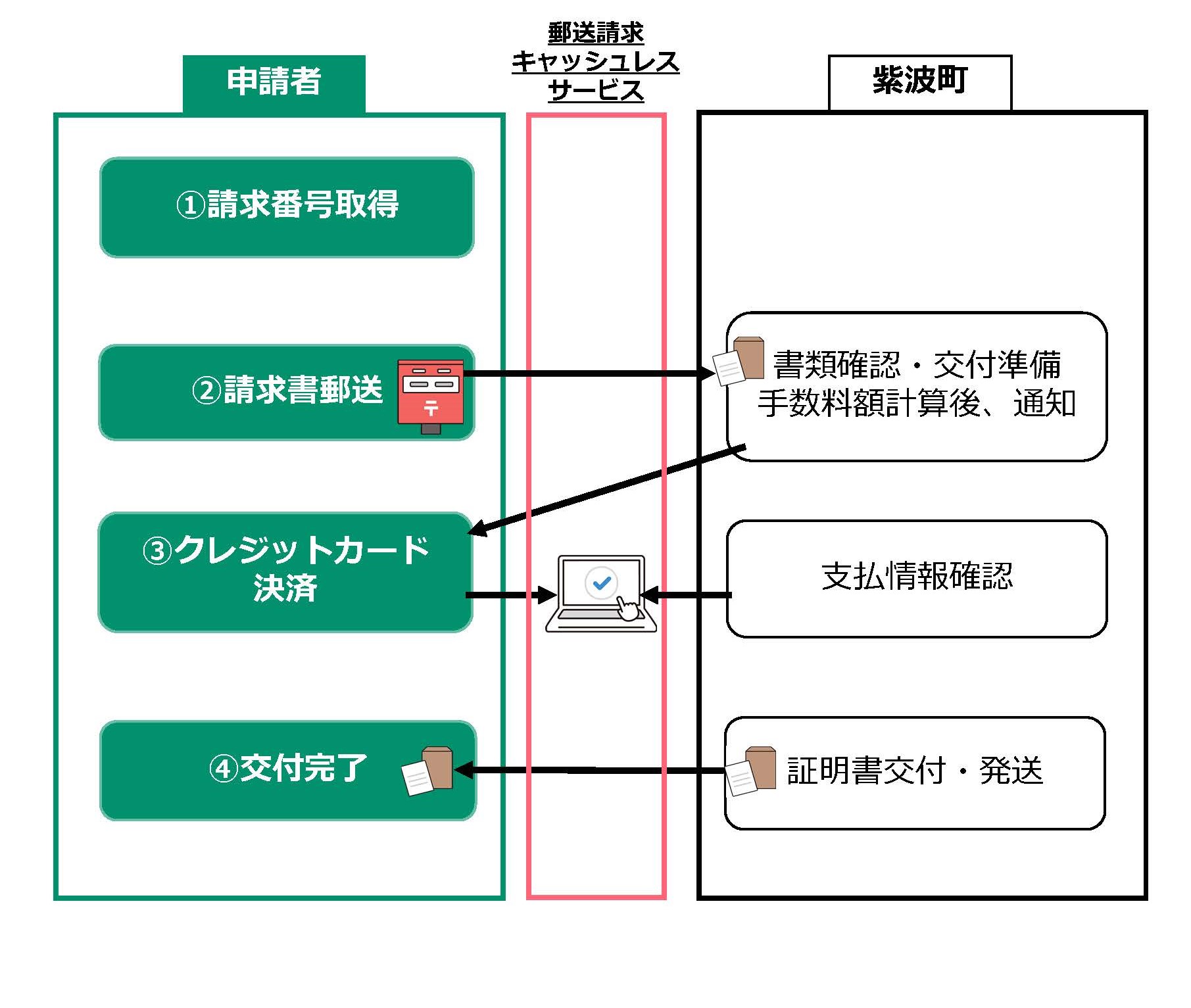交付申請書、本人確認書類の写し、切手付き返信用封筒、その他添付資料など請求に必要な書類一式を郵送していただき、金額が確定した旨の連絡を確認次第、証明書交付手数料の支払いをオンラインで行ってください。