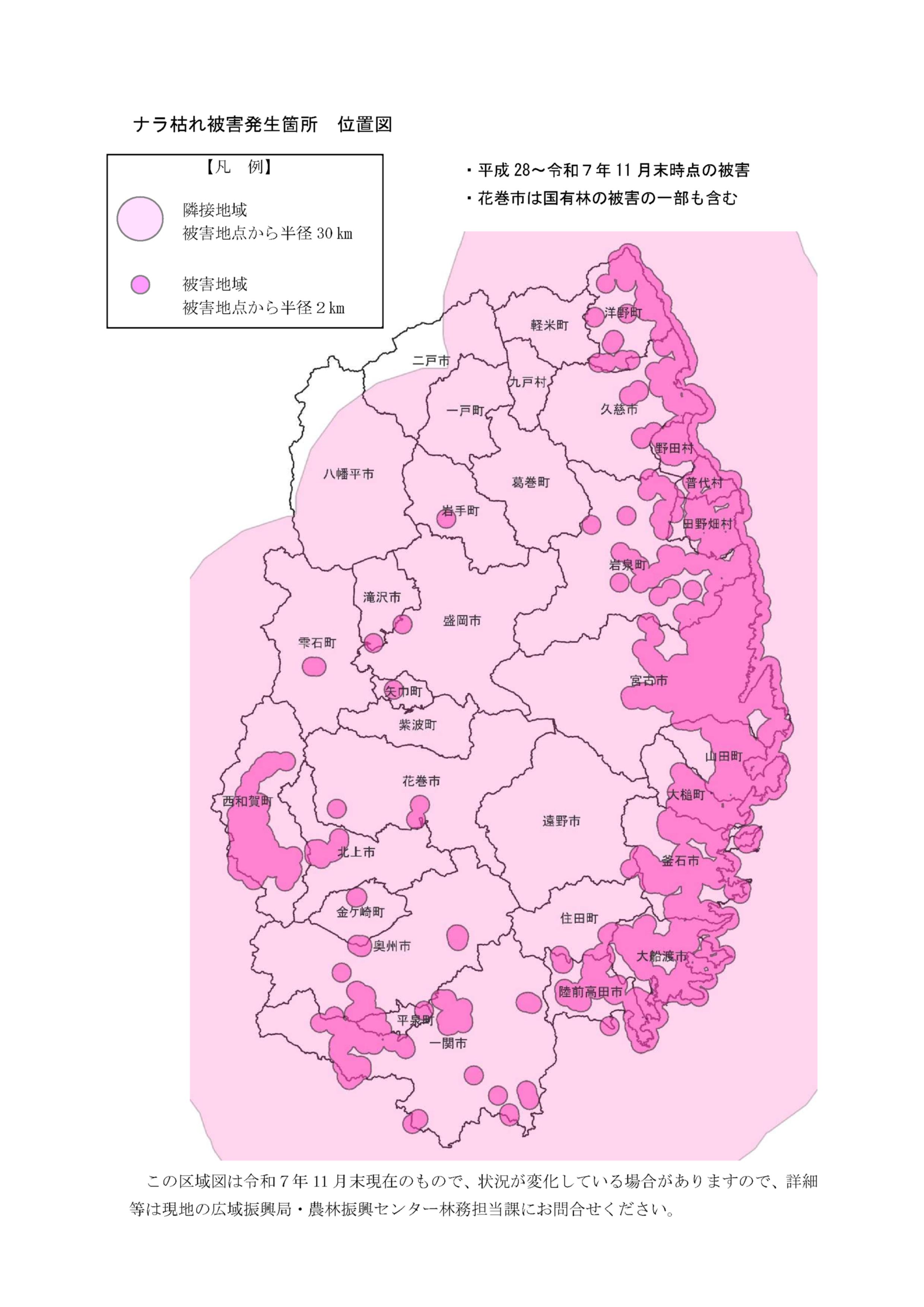 岩手県内のナラ枯れ被害(岩手県のホームページ)