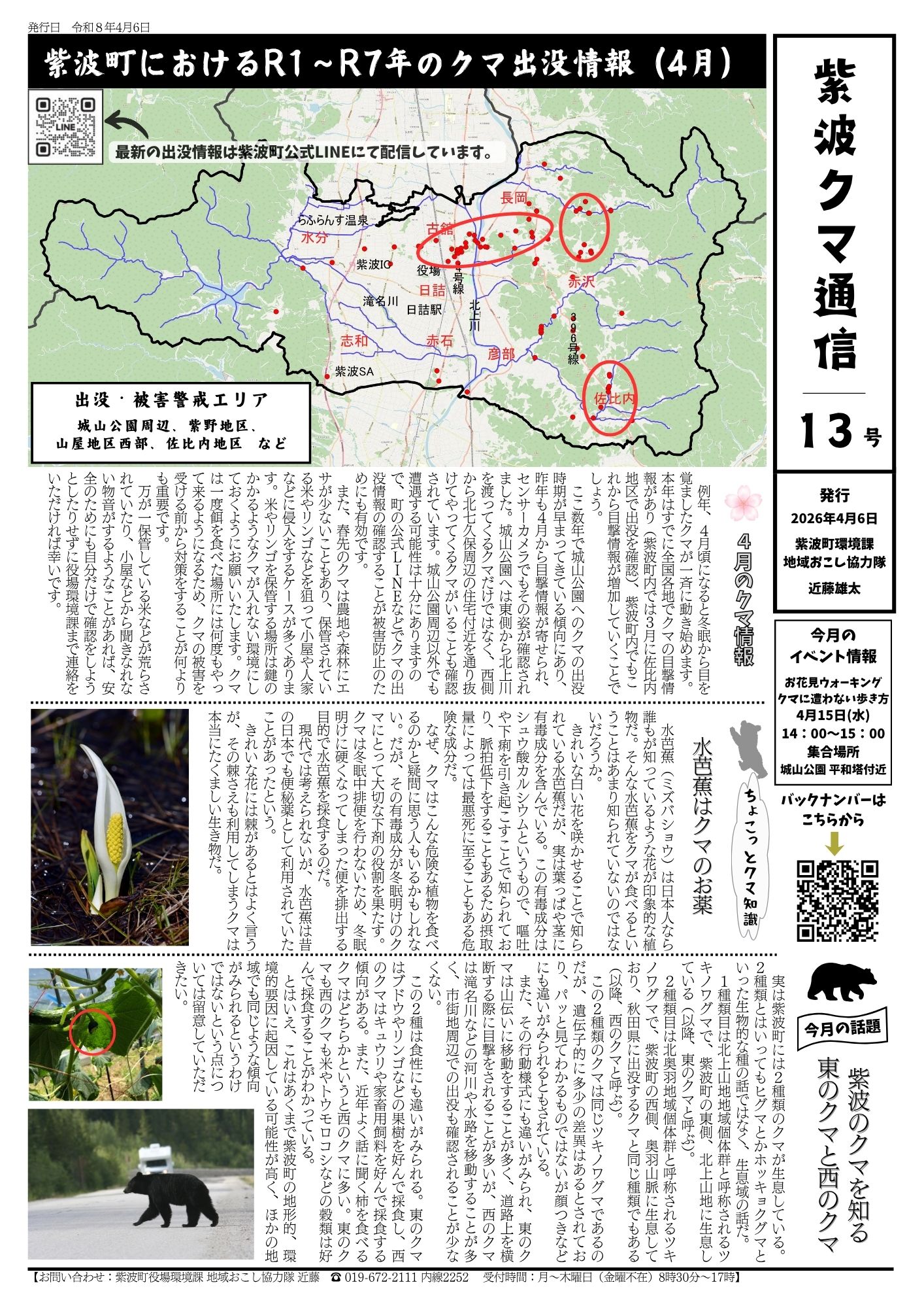 「紫波クマ通信」発行中です。最終更新日:2026年04月13日