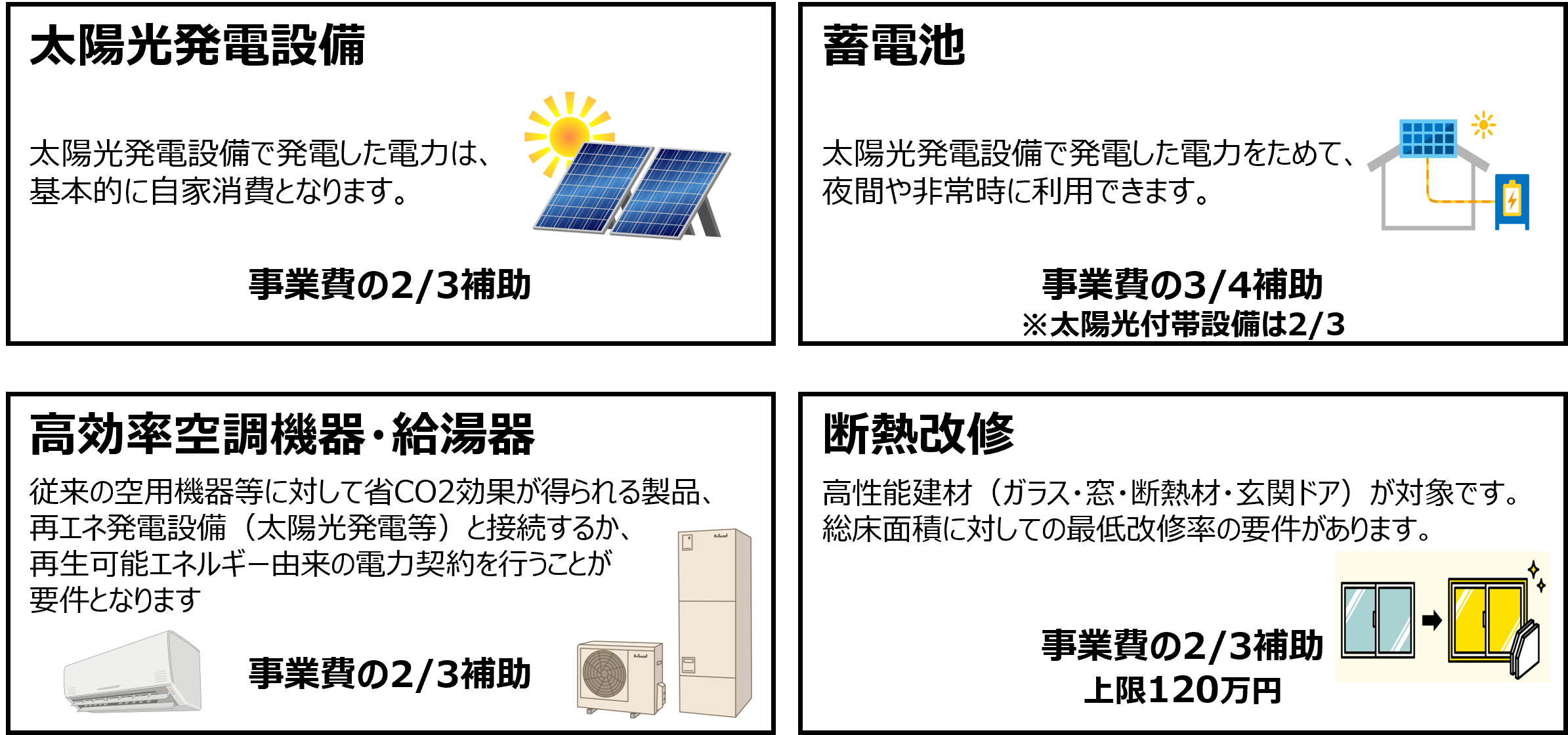 令和5年4月に環境省より採択された脱炭素先行地域づくり事業「みくまるっと脱炭素化モデル事業」において、水分地区及び志和第8行政区等(以下「対象地区」という。)で行われる再エネ・省エネ設備の導入並びに住宅の断熱改修に対して補助金を交付します。