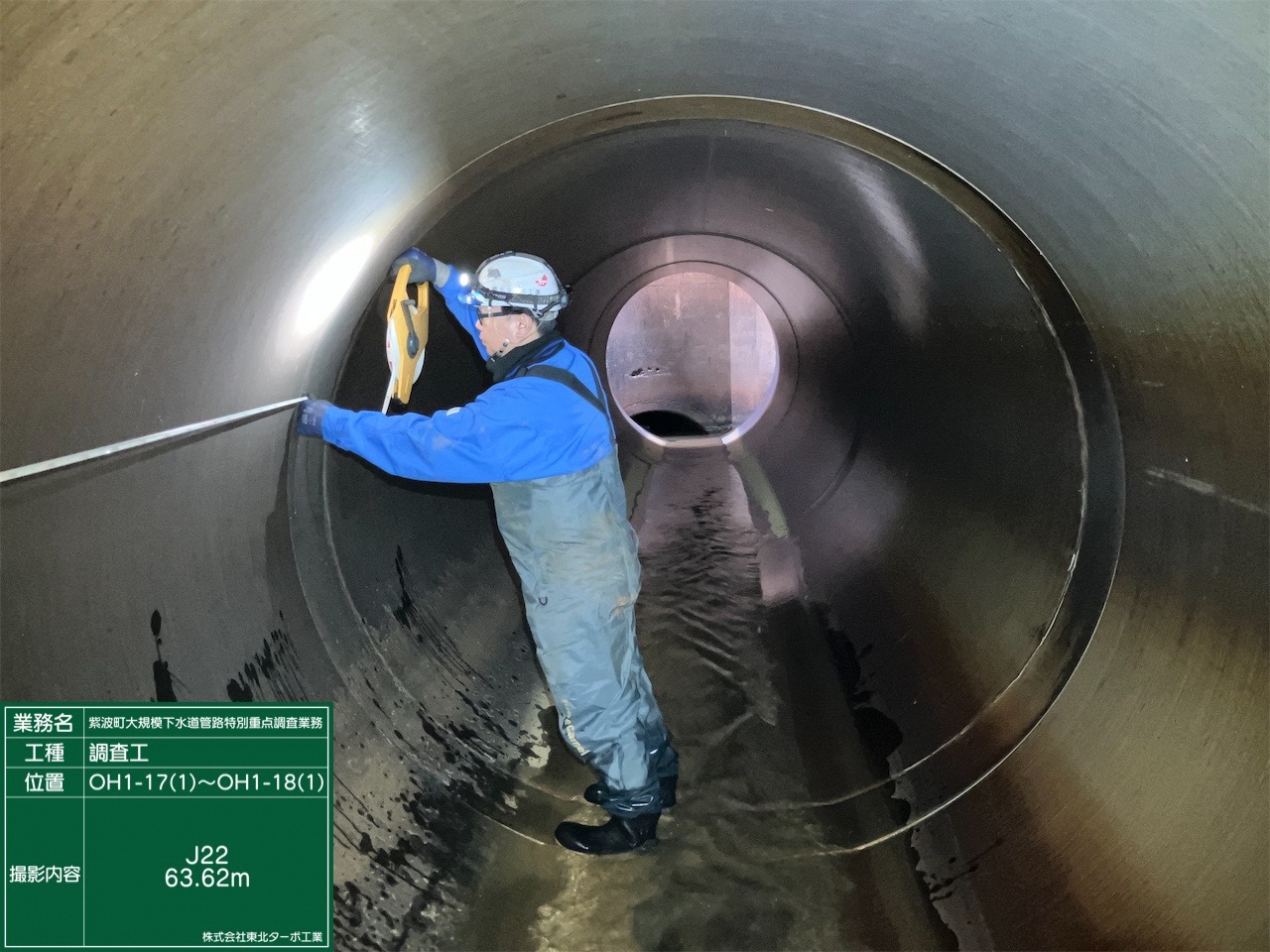 令和7年1月28日に埼玉県八潮市で発生した下水道管の破損に起因すると考えられる道路陥没を受けて、国土交通省からの通知に基づき1994年度(平成6年度)以前に布設された内径2メートル以上の下水道管路施設を対象に点検を実施しました。
