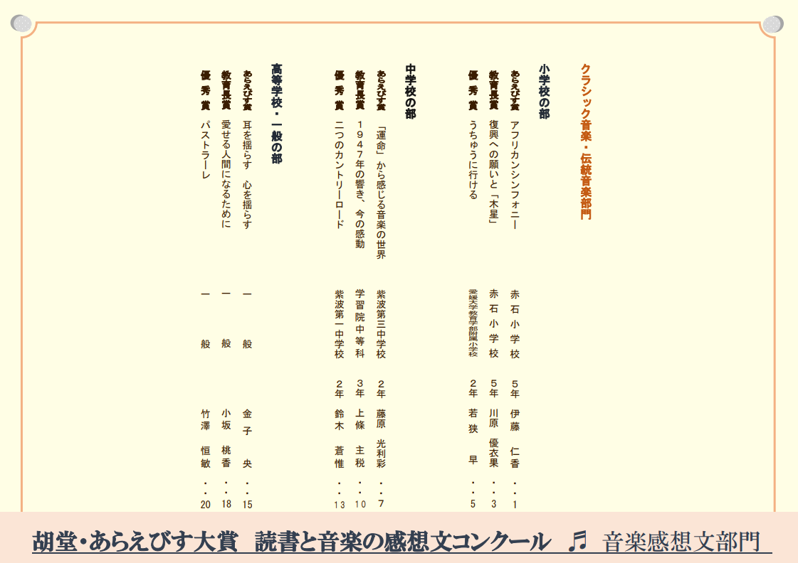 第11回 胡堂・あらえびす大賞 読書と音楽の感想文コンクール 入賞作品集を公開します最終更新日:2026年02月27日