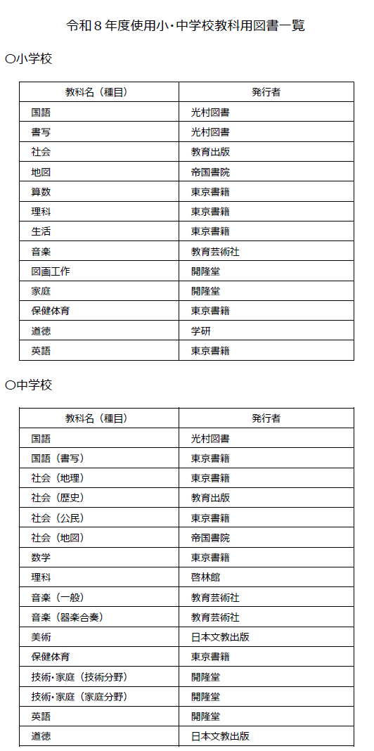【教育委員会】令和8年度に使用する教科書が決定しました