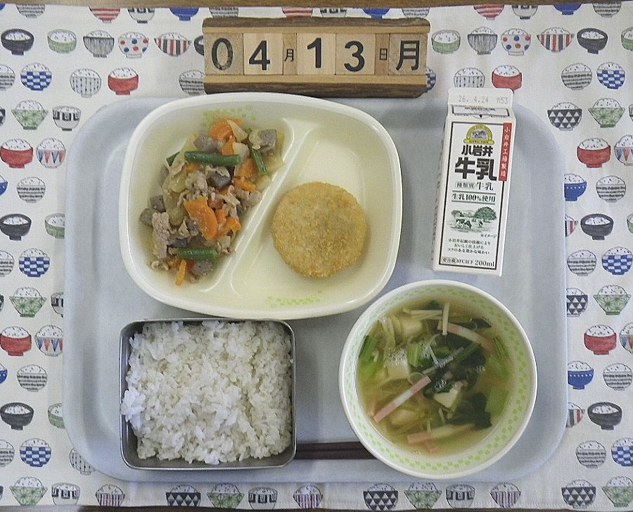 給食は学校給食摂取基準に基づいて作っています。この基準は、小学校では低学年・中学年・高学年と3つに分かれています。新しい学年になってご飯の量が増えたと感じている人もいるでしょう。体の成長に合わせてご飯の量も変わっていきます。給食は今の自分に必要な量の栄養素をバランスよくとれるように、色々な食品を組み合わせています。苦手なものにも、みなさんの成長にかかせない栄養素が含まれているので、苦手なものがでたときも、一口は食べるようにしましょう。